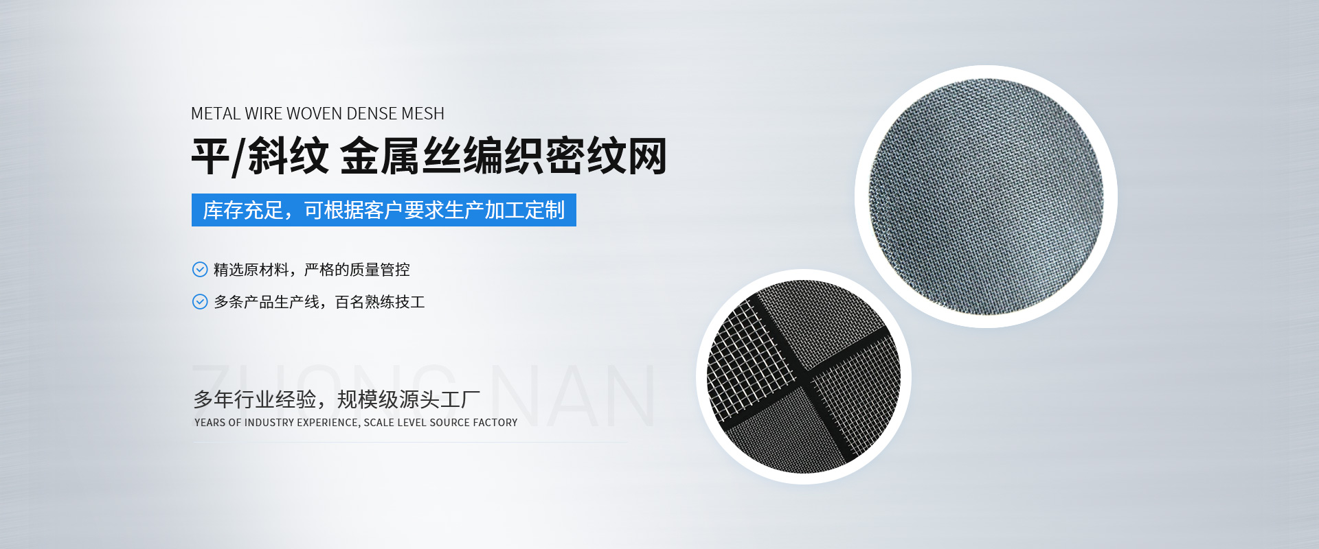 新鄉市中南金屬網有限公司成立于1999 年,公司設在河南省新鄉市。在過去的十幾年來,我們堅持以嚴格的管理措施、雄厚的技術力量、良好的工藝設施,質量上乘、信譽為上為原則,把樹立良好的企業形象為工作宗旨,歷經市場的嚴峻考驗并贏得廣大用戶的一致好評。金屬絲網編織結構形式有平紋和斜紋兩種方法,嚴格按照航空軍品標準HB1862—93和標準GB/T5330—2003標準,并等效采用國際標準ISO9044—90標準組織生產。  公司擁有生產設備和技術人員,主要生產不銹鋼篩網、磨料網、金屬絲編織方孔網、篩網、濾網 、篩分網 、過濾網、不銹鋼網、絲網、金屬絲網、金屬絲編織密紋網、特種網、不銹鋼密紋網、荷蘭網、席型網。絲網材質選用黃銅、錫青銅、不銹鋼、純鎳等。席型網規格7/44目—500/3500目,方孔網規格1/2目—500目,網孔25mm—0.028mm,產品廣泛用于機械、化工、化纖、石油、醫藥、橡膠、濾芯、固體果粒篩分、流體過濾以及裝飾、防塵、骨架支撐等?! ∥覀円浴耙曎|量為生命、以信譽求生存、以科技促發展、以優*產品為客戶服務”的經營理念,真誠的希望與各界人士攜手并進,共創輝煌!